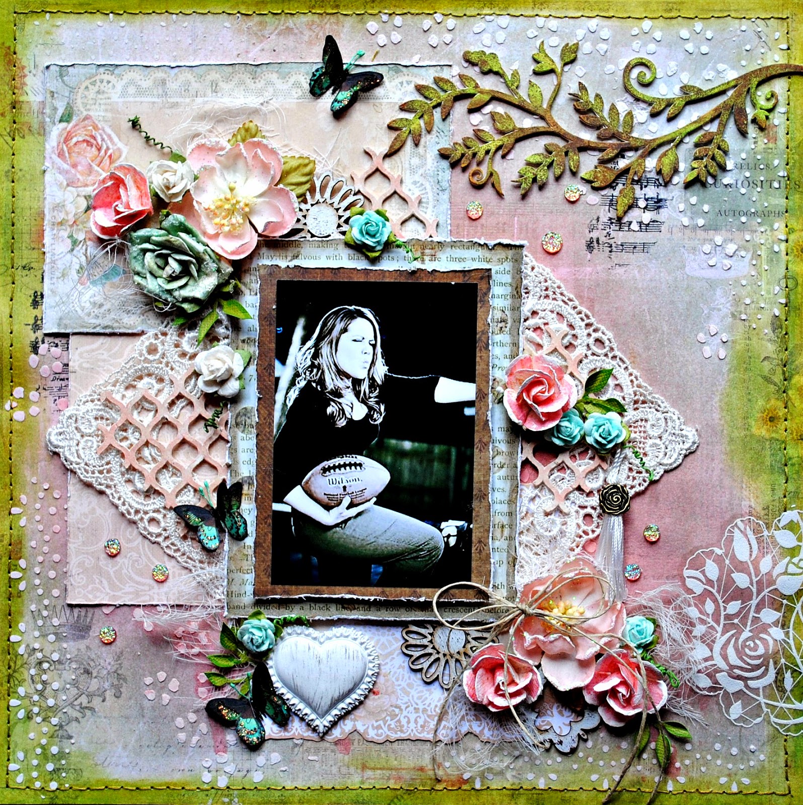 May Arts lace pieces Prima paper, flowers, wooden embellishments, tassle, crystals, stencils, modeling paste, resin heart Ranger stickles