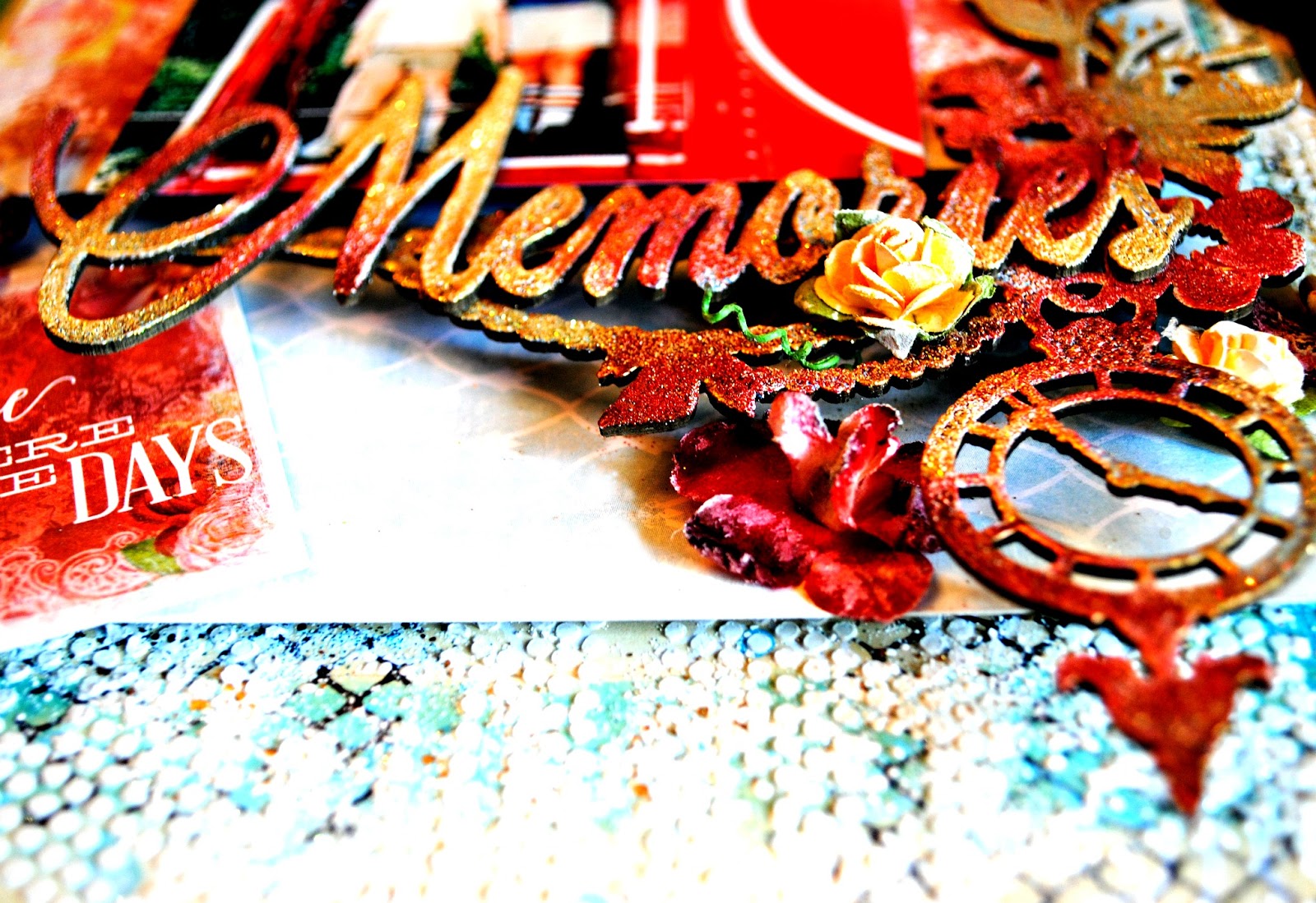 Blue Fern Studios paper: Montage, Society stamp: Essential Textures chipboard: Timeless Floral Corner, Memories embossing powder: Poinsettia, 14 Karat